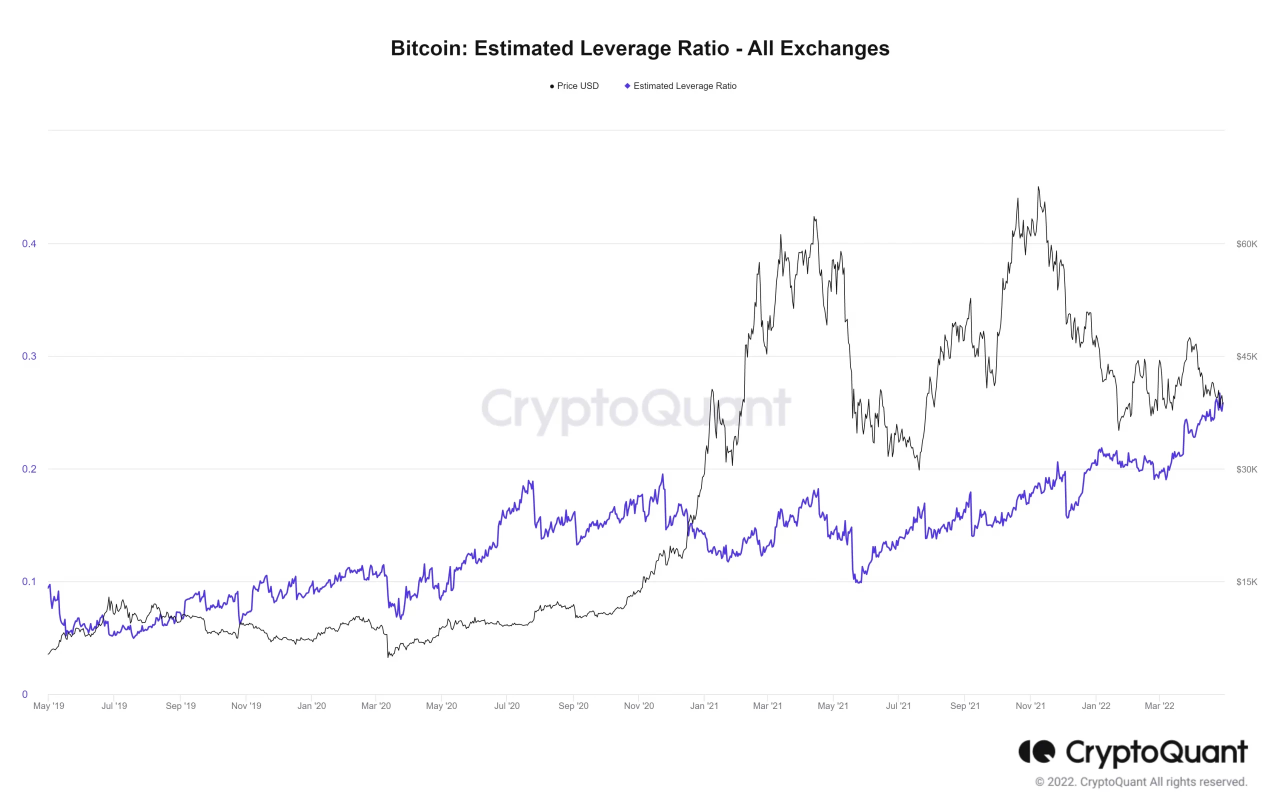 Hãy quan sát một lần nữa biểu đồ trên, bất kể khi nào Open Interest tăng nóng đa phần dễ kéo theo đợt giảm mới. Nhìn sâu hơn và tình trạng này với tỷ lệ sử dụng đòn bẩy, có thể thấy các nhà đầu cơ đang “ăn thua” với thị trường.