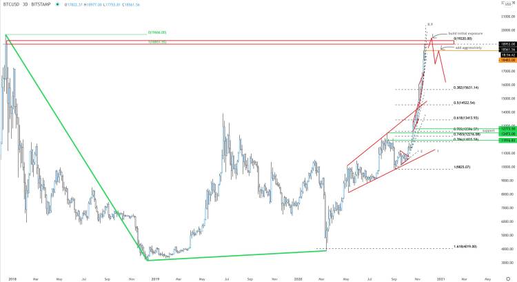 Nếu Bitcoin vượt qua 20.000 đô la, nó sẽ khám phá giá khi tìm kiếm mức trần mới. Trên 20.000 đô la, không có dữ liệu hoặc bằng chứng lịch sử nào cho thấy BTC sẽ đi đâu tiếp theo.