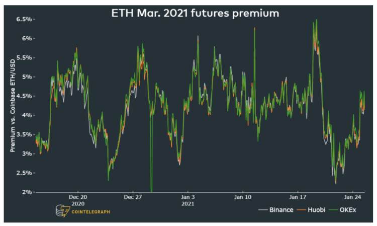 Cần lưu ý rằng các bàn giao dịch chênh lệch giá và các nhà tạo lập thị trường bao gồm một phần lớn các chỉ số thương nhân hàng đầu của sàn giao dịch. Phí bảo hiểm tương lai cao bất thường sẽ khuyến khích những khách hàng đó tạo các vị thế bán khống (short) trong hợp đồng tương lai đồng thời mua các vị thế giao ngay của Ether.