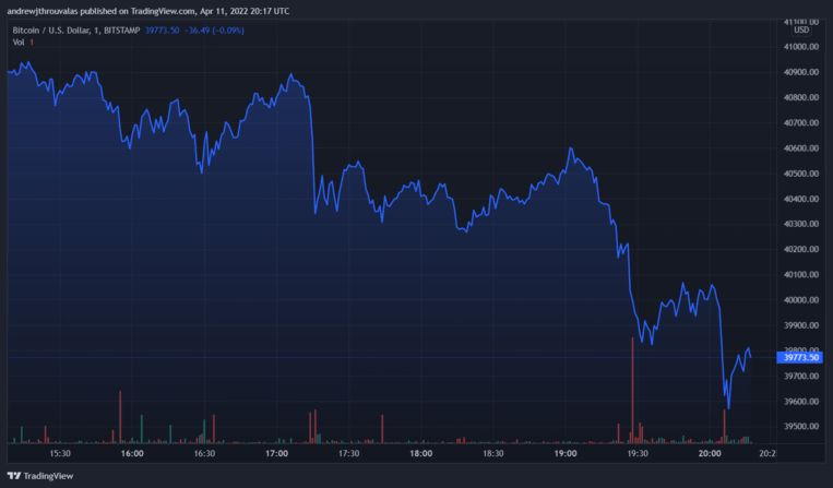 Xu hướng giảm tiếp tục vào thứ Hai tuần này, khi Bitcoin giảm xuống dưới 40 nghìn USD lần đầu tiên kể từ ngày 16 tháng 3. Giá của nó là 39.565 USD vào thời điểm viết bài trên Bitstamp.