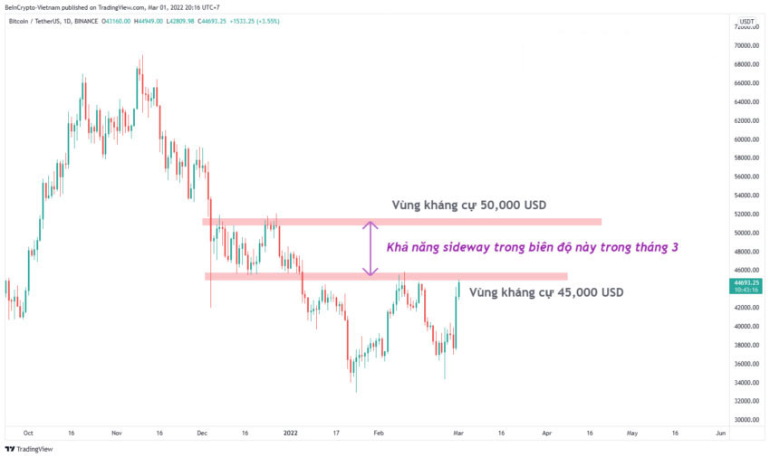 #1. Biên độ dự đoán cho giá Bitcoin trong tháng 3