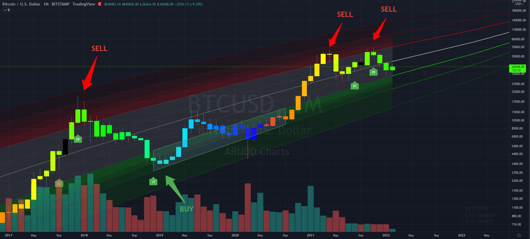 Nhà phân tích đã áp dụng mô hình LFG trên biểu đồ BTC / USD hàng tháng.