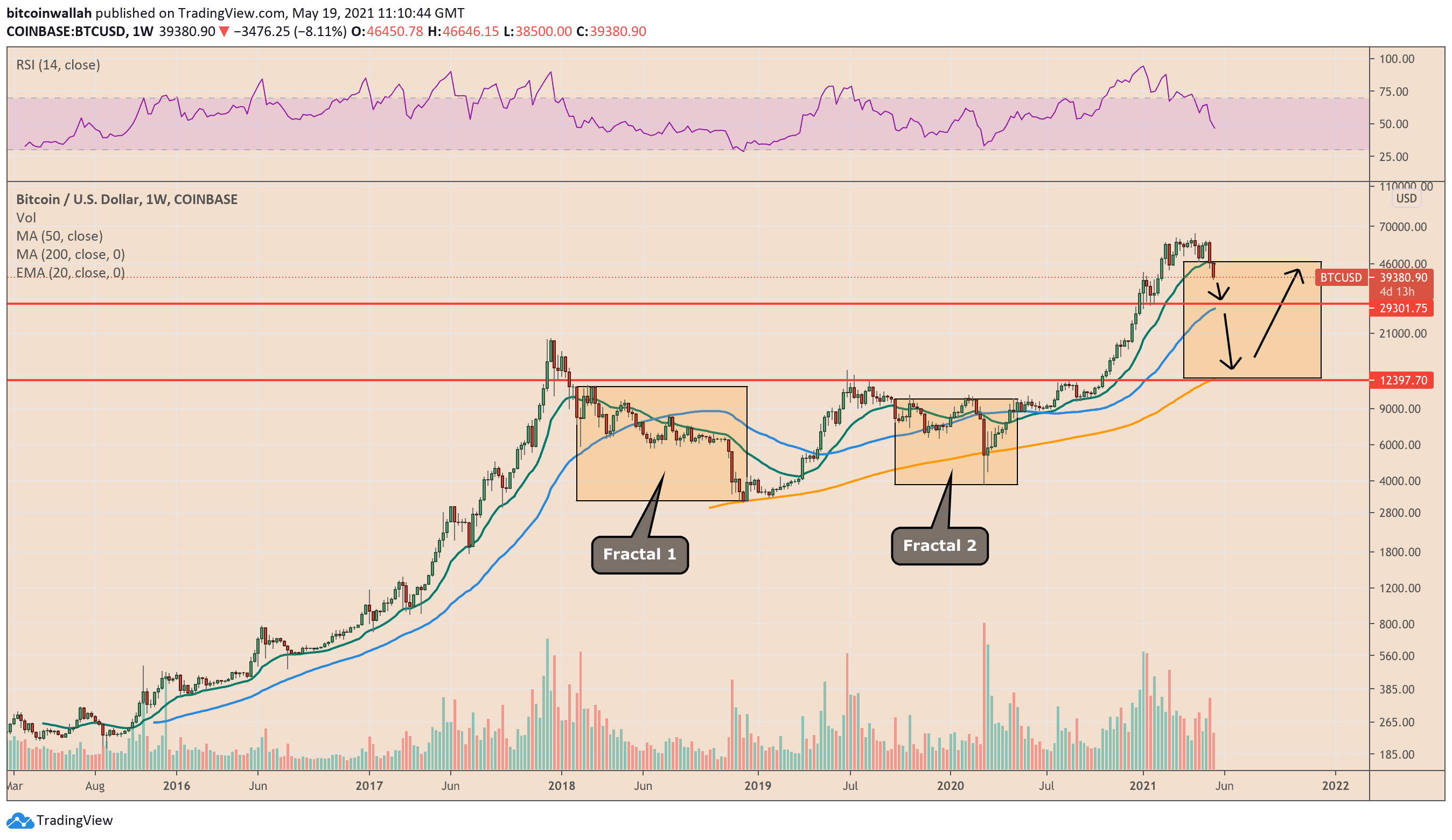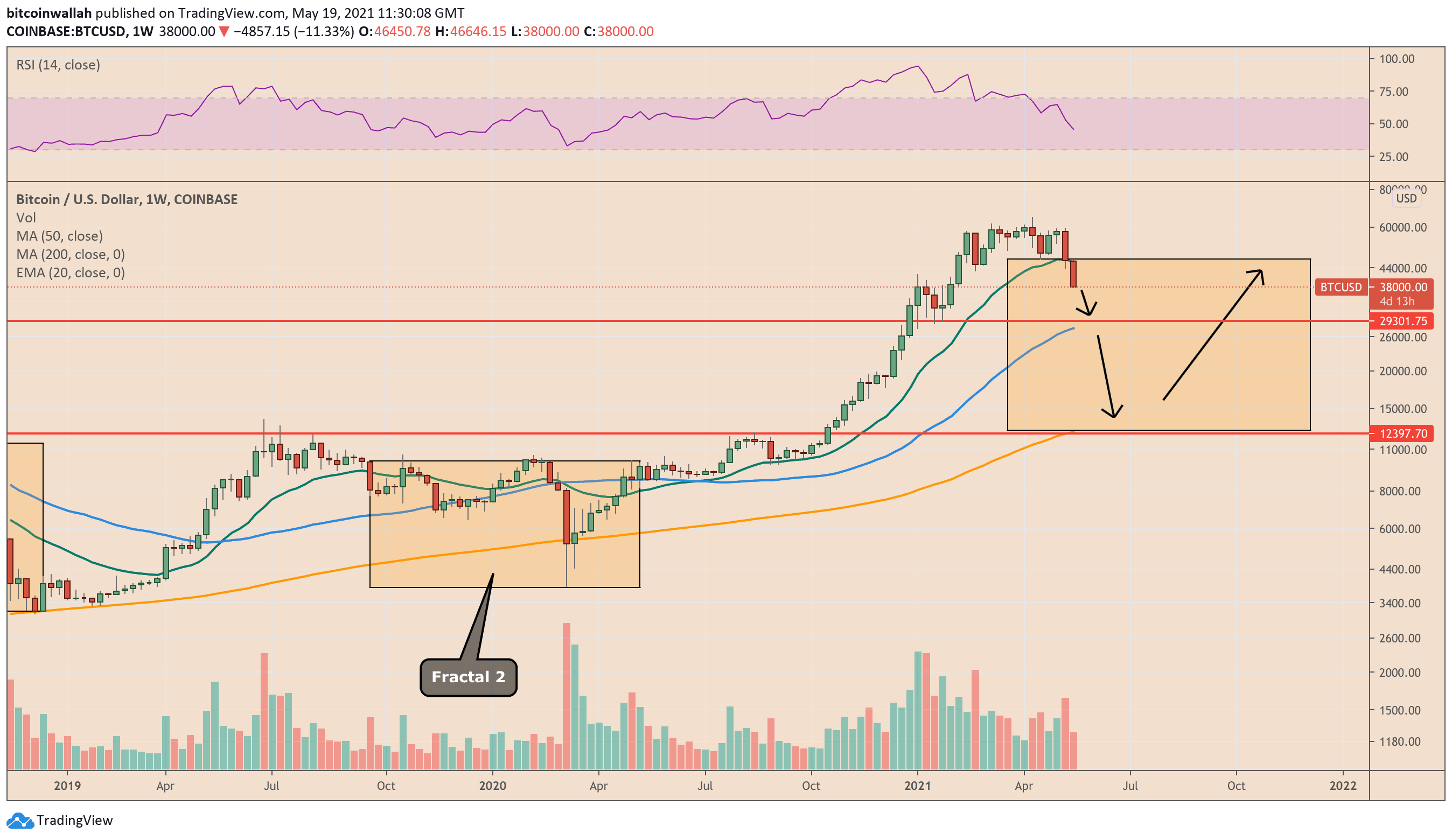 20-WMA trong thời kỳ giảm giá đã gần mức $46,000. Tuần này, BTC đã giảm xuống mức thấp nhất mới là 30.000 đô la trên Coinbase.