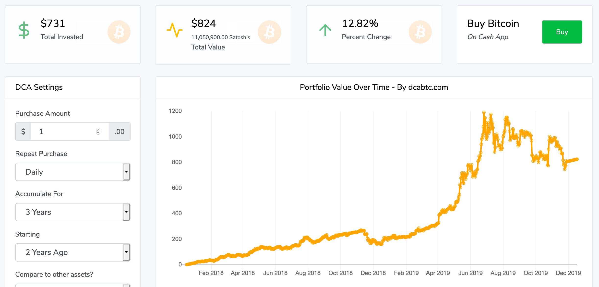 DCA cũng tạo ra một công cụ phân tích tốt bằng cách loại bỏ tính tùy tiện khi nói bitcoin tăng (hoặc giảm) kể từ (ngày X).