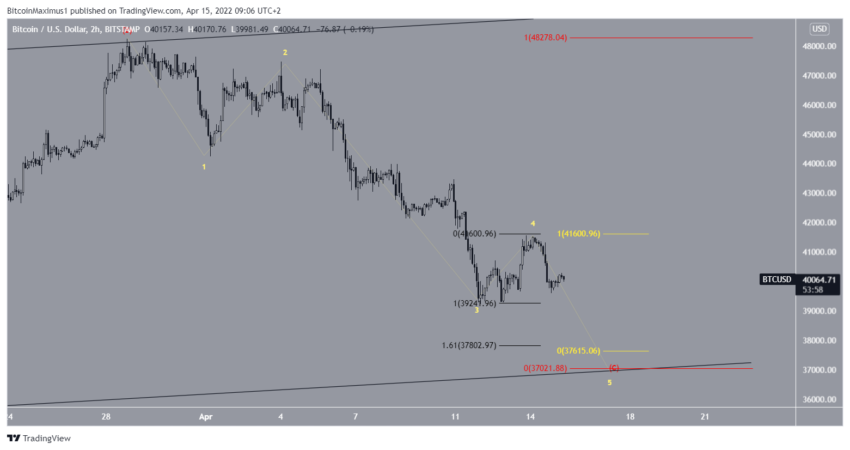 Tuy nhiên, BTC vẫn đang điều chỉnh trong cấu trúc có vẻ là A-B-C (màu đỏ). Vì vậy, mục tiêu tiềm năng cho đáy của sóng lần này được tìm thấy gần khu vực 37,000 USD. Điều này sẽ cung cấp cho các sóng A và C tỷ lệ 1:1 và sẽ trùng với đường hỗ trợ của một kênh song song tăng dần.
