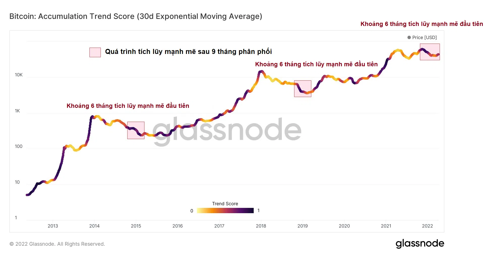 - Và kể từ tháng 11/2021 cho đến nay, Bitcoin đang trải qua 6 tháng tích lũy mạnh mẽ đầu tiên với sự tham gia rất mạnh mẽ của những quỹ lớn như Terra, MicroStrategy…