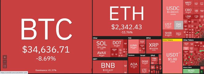 Trong 7 ngày giao dịch gần nhất, giá Bitcoin đã mất tới hơn 20% và khiến tâm lý của các nhà đầu tư rơi vào hoảng loạn. Các đồng tiền mã hóa lớn khác như Ethereum, Cardano, Solana hay Avalanche đều có mức giảm mạnh, trong khoảng từ 9-12%.