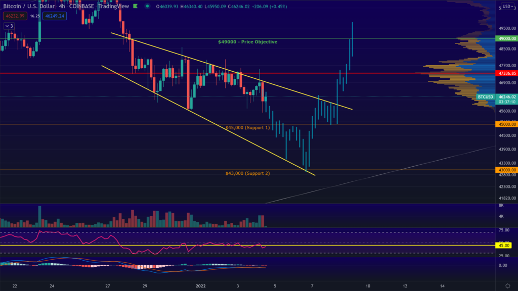 Nếu quan sát kỹ hơn, có thể thấy dự đoán này đưa ra khoảng thời gian dự tính cho biến động giảm về 43,000 USD rồi phục hồi lại 49,000 USD là từ đây cho đến giữa tháng 1/2022.