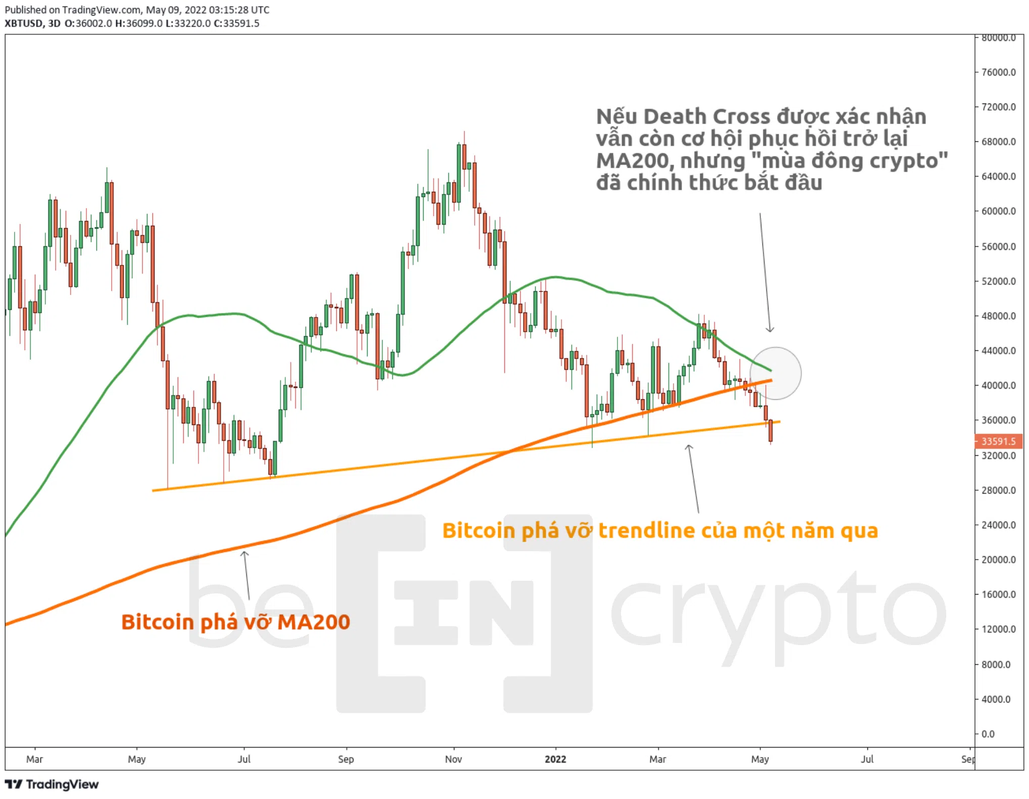 Sự lo sợ một khi đạt đến vùng 10 điểm (theo Crypto Fear & Greed Index) thì thường sẽ kéo dài thêm một thời gian. Tuy nhiên, ở góc nhìn khác nó mở ra cơ hội. Nếu Death Cross được xác nhận vẫn còn cơ hội phục hồi trở lại MA200. Nhưng “mùa đông crypto” đã chính thức bắt đầu.