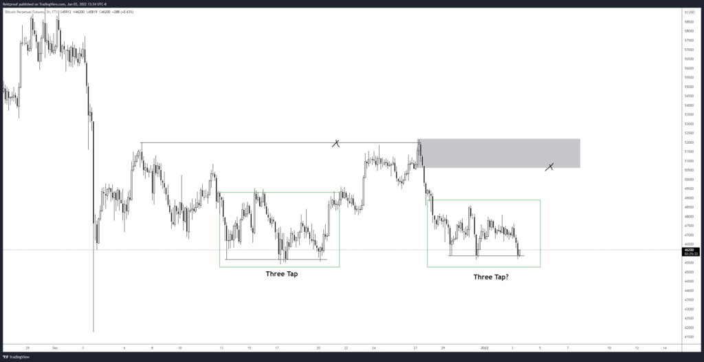 Potential double bottom forming, but only confirmed on a break past 51k.