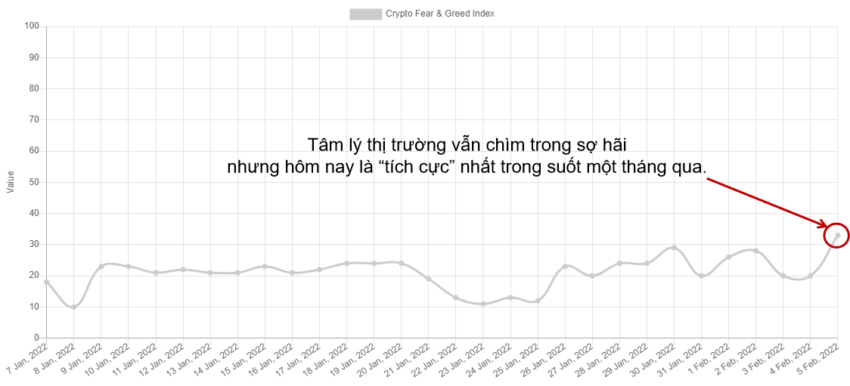 Hôm nay, Crypto Fear & Greed Index đạt hơn 30 điểm. Tâm lý thị trường vẫn sợ hãi, nhưng là “tích cực” nhất trong suốt một tháng qua.