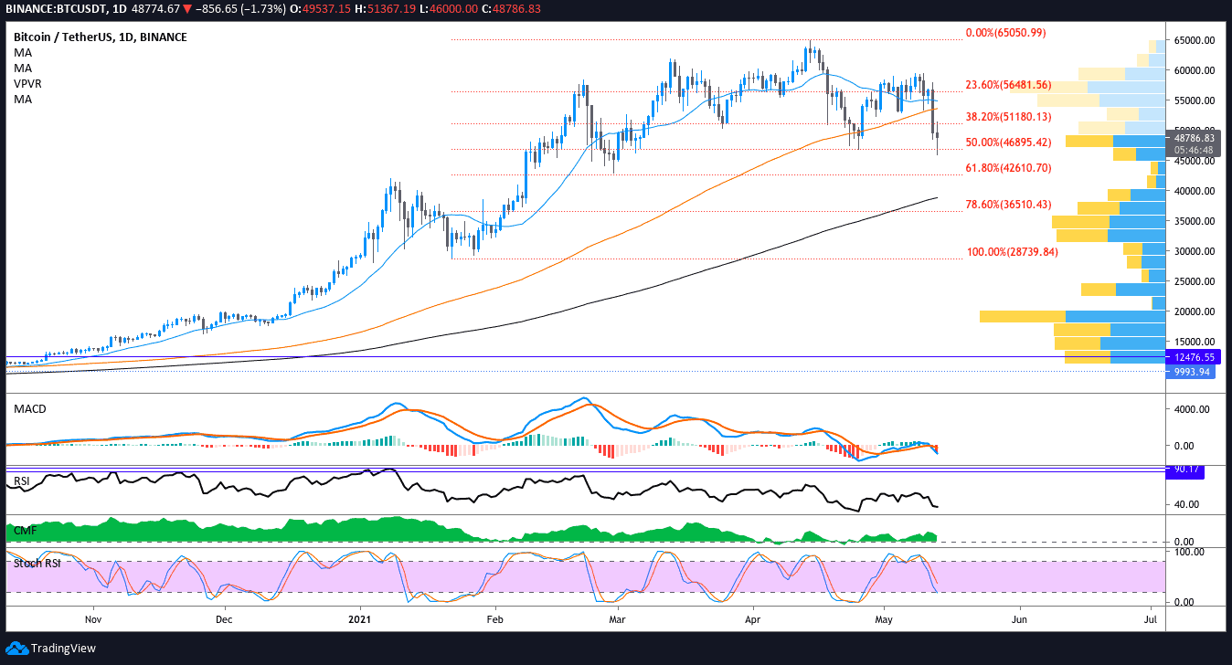 Ban đầu, đó là thông báo ngày 12 tháng 5 của Tesla rằng họ sẽ ngừng chấp nhận Bitcoin như một khoản thanh toán vì những lo ngại về môi trường, cùng với sự yếu kém về kỹ thuật, đã đẩy giá BTC xuống 46.000 đô la.