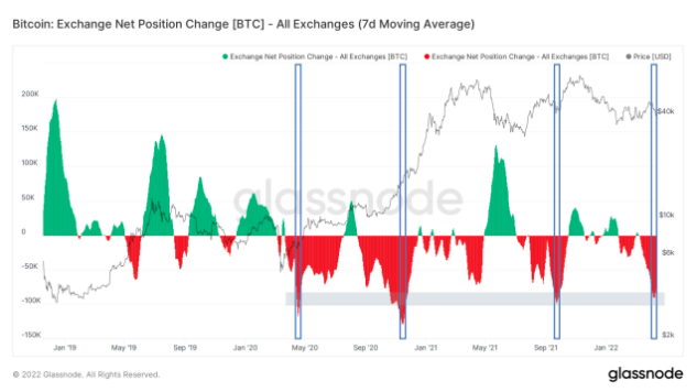 “Chỉ có 3 trường hợp khác, chúng ta đã từng thấy Bitcoin bị rút khỏi các sàn giao dịch với tốc độ này”, ông ấy viết cùng với dữ liệu từ công ty phân tích chuỗi trực tuyến Glassnode.