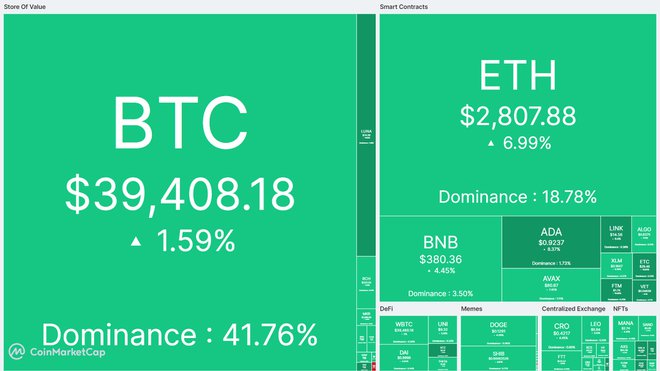 Các đồng tiền nền tảng khác cũng ghi nhận “sắc xanh” sau thời gian ảm đạm. Ethereum (ETH), Binance (BNB), Solana (SOL) lần lượt tăng 20%, 16% và 20%, theo TradingView. Vốn hóa toàn thị trường quay trở lại mốc 1.760 tỷ USD. Thị trường đều quay lại các mức giá như trước khi xảy ra cuộc chiến tại Ukraine.