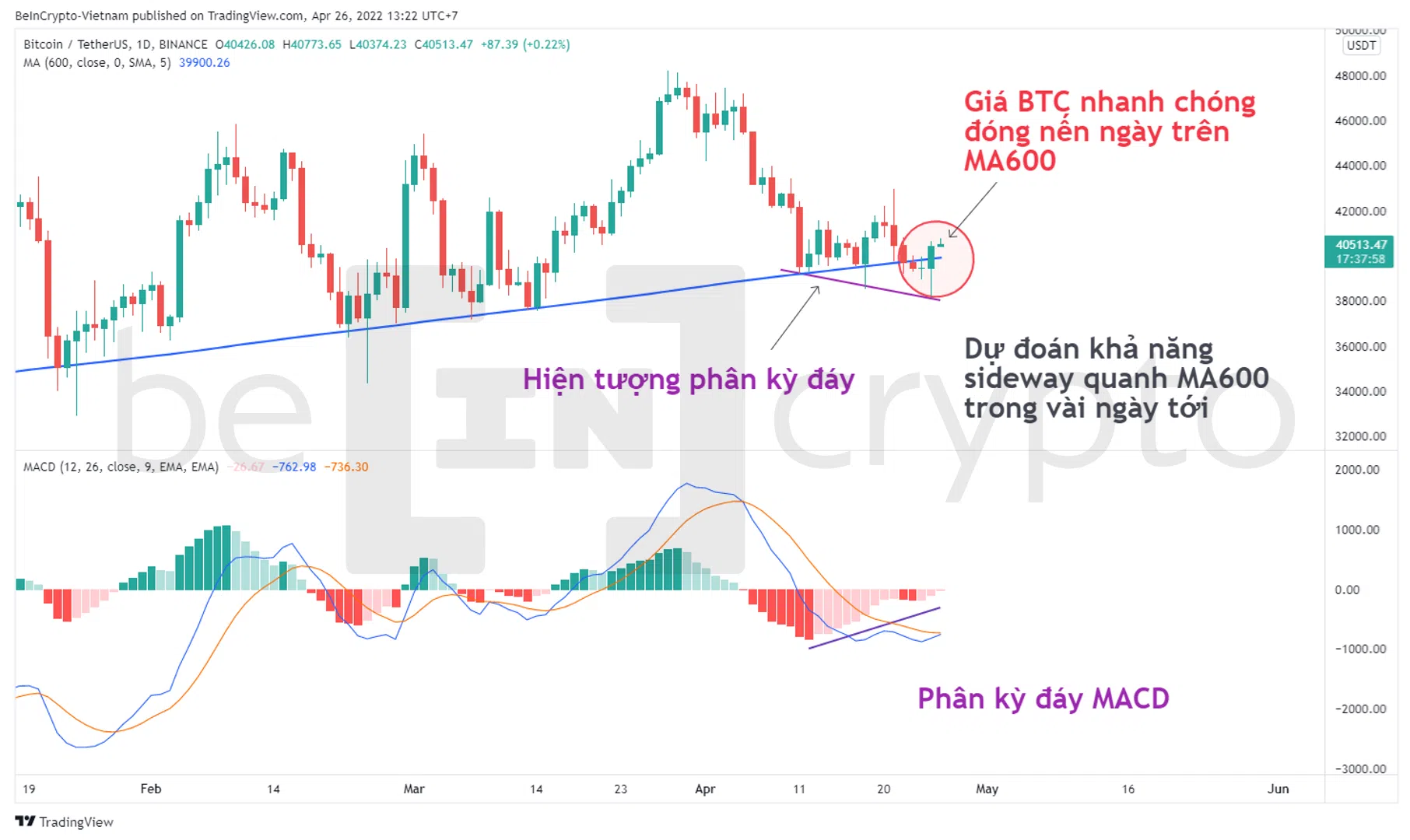 Giá Bitcoin đóng nến trên MA600 khung ngày