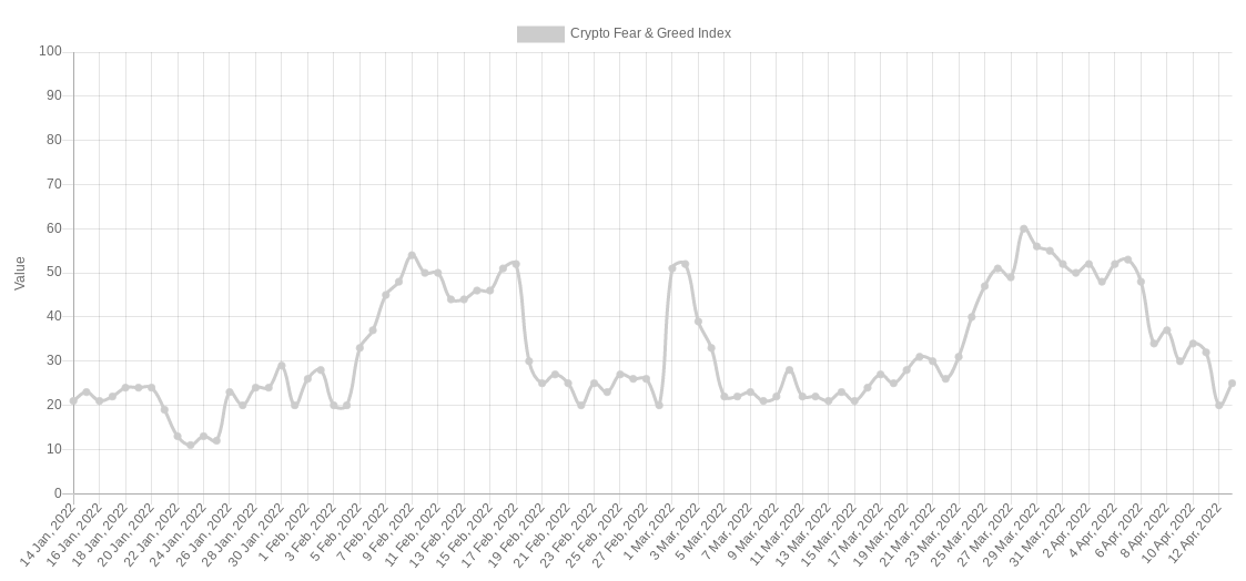 Đồng thời, tâm lý đang tiêu cực, theo tính toán của Chỉ số Sợ hãi & Tham lam tiền điện tử, chỉ số này đã đạt 20/100 hoặc “nỗi sợ hãi tột độ” vào ngày 12 tháng 4. Điểm số tâm lý thấp như vậy được ghi nhận lần cuối vào cuối tháng Hai.