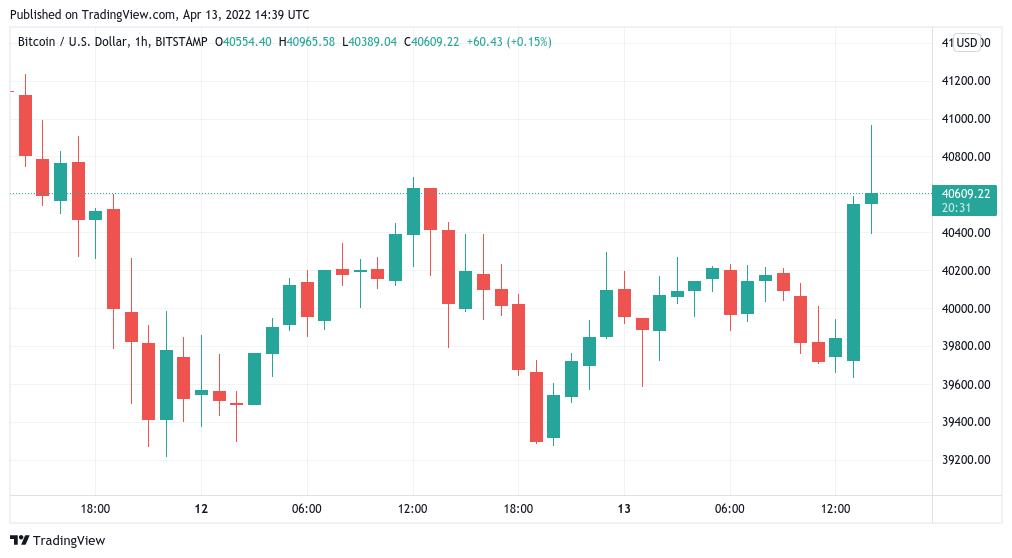 Bitcoin (BTC) đã chứng kiến một sự bứt phá đáng mừng vào ngày 13 tháng 4 khi tiền điện tử hàng đầu tăng lên gần 41.000 USD.