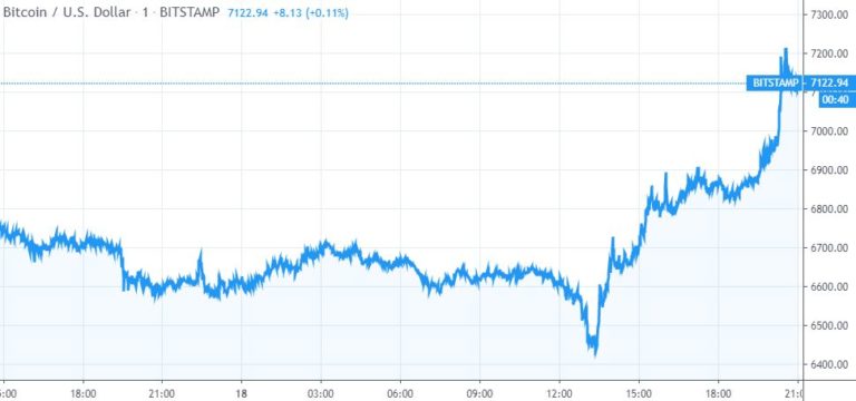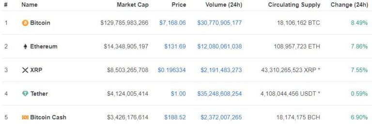 Theo dữ liệu giá từ sàn giao dịch tiền điện tử Bitstamp, bitcoin cuối cùng được giao dịch ở mức $7.160 với mức tăng hàng ngày là 8,3%. Điều đó đã giúp cho thị trường của BTC phục hồi lên trên 130 tỷ đô la.