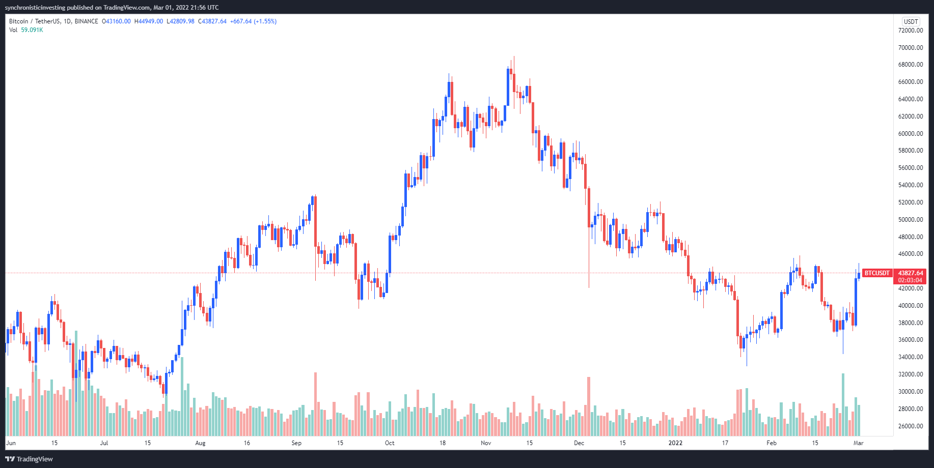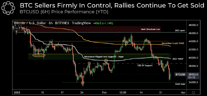 Kể từ đó, giá đã không duy trì được đà tăng và quay trở lại khu vực 34.000 USD này khi Nga tuyên bố xâm lược Ukraine. Giá đã tăng lên 38.000 USD vào thời điểm viết bài, nhưng việc xem lại mức hỗ trợ 34.000 USD chắc chắn vẫn chưa nằm ngoài câu hỏi.