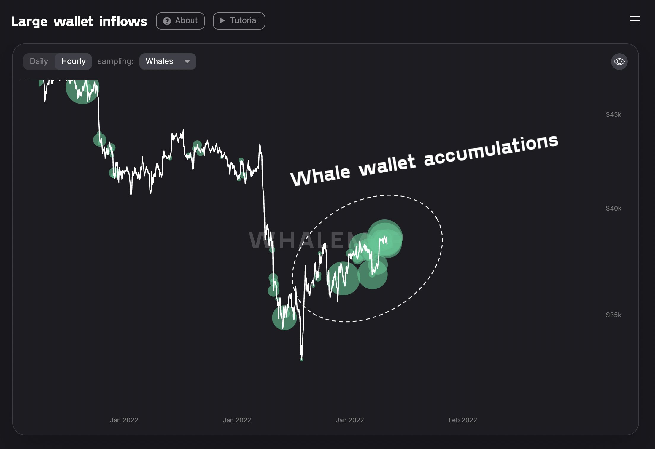 Phân tích hành vi của cá voi, tài nguyên theo dõi trực tuyến Whalemap cho thấy sự tích lũy đang được tiến hành ở mức trên 36.000 USD.