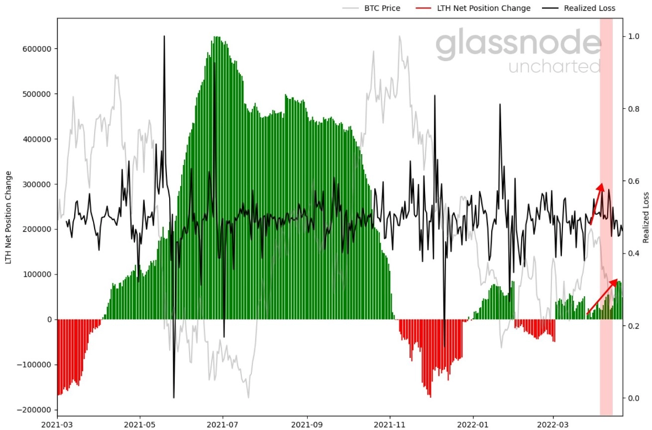 Những người nắm giữ ngắn hạn hoảng sợ bán lỗ trong khi sự thay đổi vị thế ròng của người nắm giữ dài hạn tăng lên.