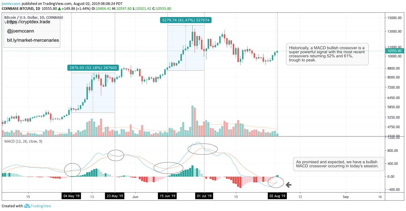 Sự giao nhau của MACD không đến như một bất ngờ mặc sự chuyển động ngang của Bitcoin trong tuần trước. Trong khi một số nhà phân tích vẫn thể hiện sự bi quan và họ dự đoán bitcoin sẽ quay trở lại mức 8.000 đô la, biểu đồ của McCann có thể gợi ý điều gì đó khác.