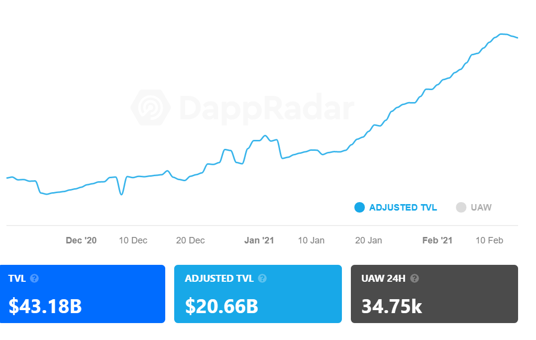Tổng giá trị bị khóa vẫn trong xu hướng tăng