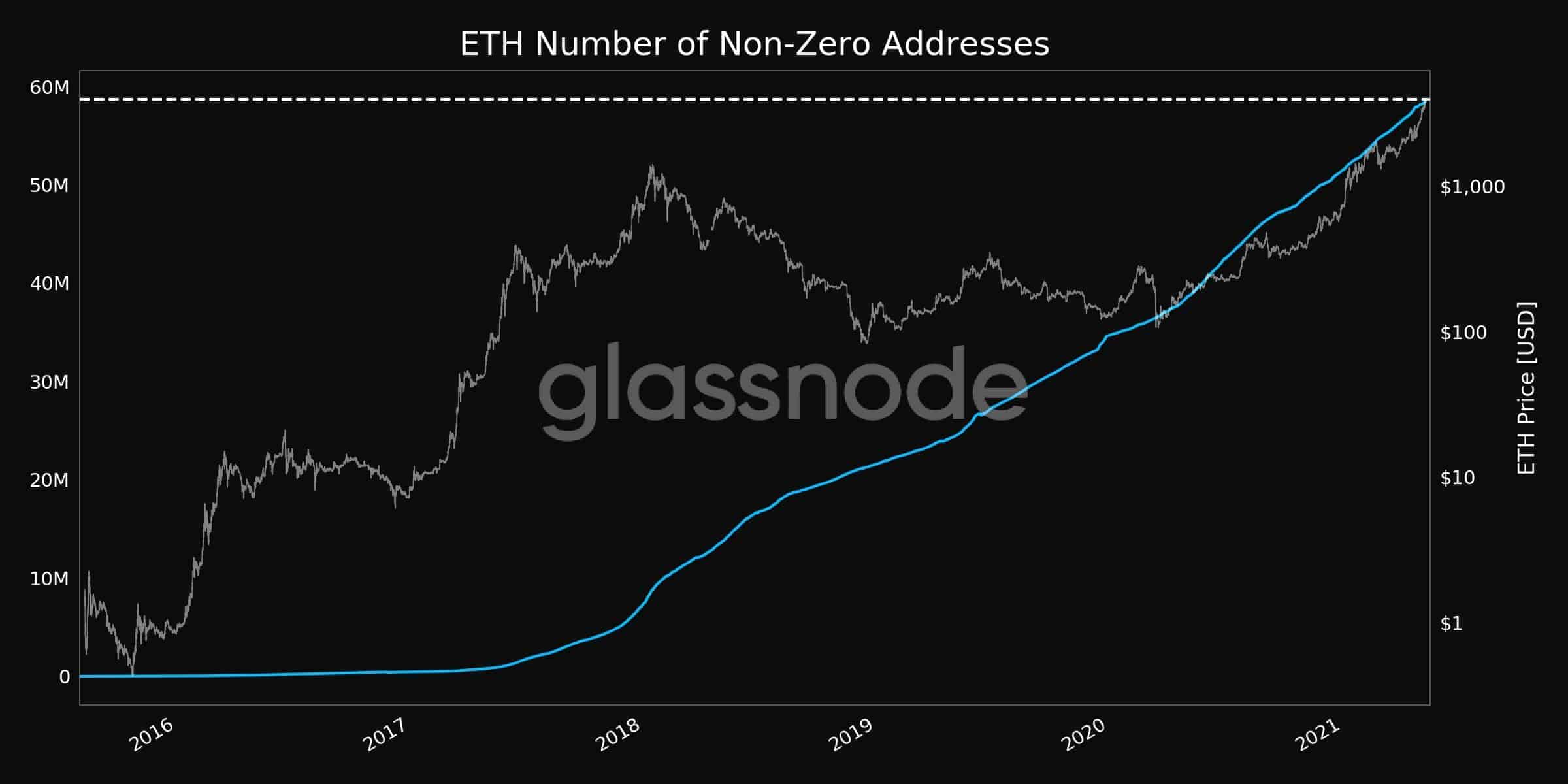 Bất chấp những vấn đề mà nó gây ra trên blockchain, việc sử dụng cao này đã thu hút sự chú ý của nhiều loại nhà đầu tư khác nhau. Bên cạnh các tổ chức, bán lẻ cũng đã đi vào hoạt động. Dữ liệu của Glassnode cho thấy số lượng ví khác 0 đã tăng lên mức ATH mới là gần 60 triệu.
