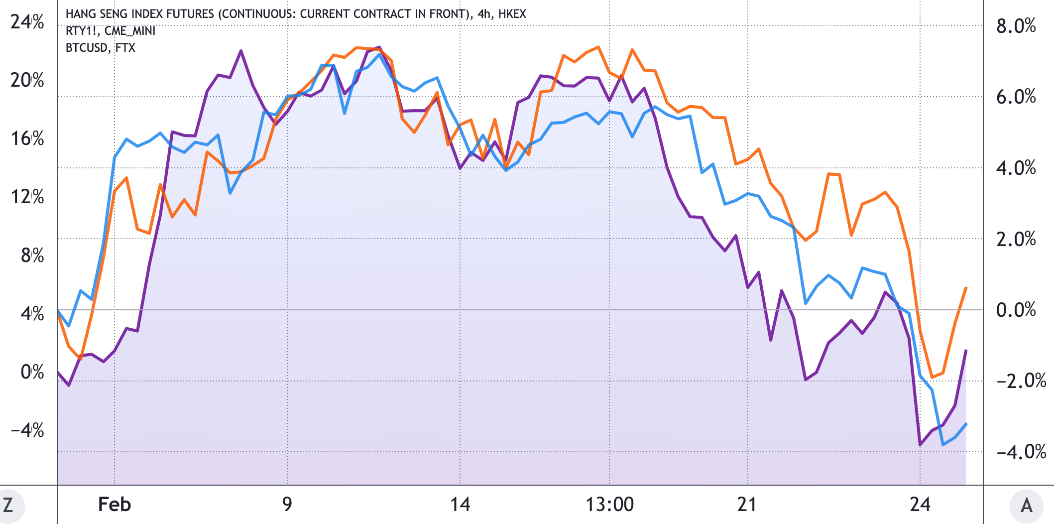 Có mối tương quan cao giữa Bitcoin, thị trường chứng khoán Hang Seng và Chỉ số Russell 2000 của Hoa Kỳ. Một lời giải thích có thể là mục tiêu thắt chặt của Cục Dự trữ Liên bang Hoa Kỳ. Bằng cách giảm mua lại trái phiếu và đe dọa tăng lãi suất, cơ quan quản lý tiền tệ đã gây ra một phong trào “bay đến nơi an toàn”.
