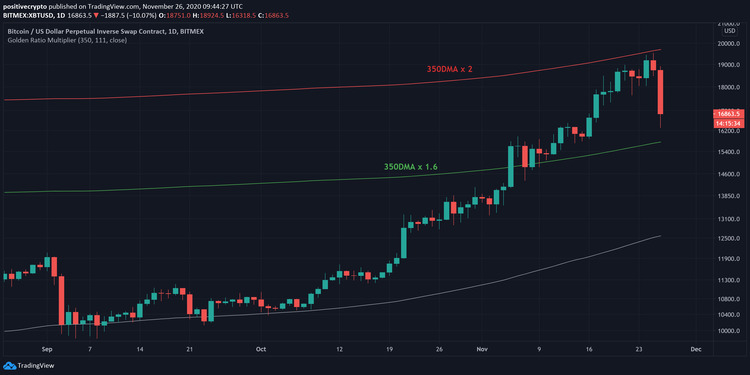Philip Swift, người tạo ra Lookintobitcoin.com, nói rằng chỉ báo Golden Ratio Multiplier cho thấy sự từ chối của mức kháng 350-DMA.