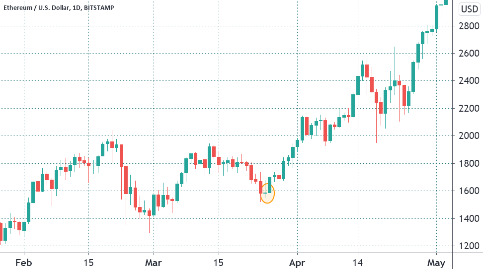 Mọi thứ bắt đầu thay đổi vào ngày 29 tháng 3, khi Visa cho biết sẽ chấp nhận các khoản thanh toán bằng stablecoin USDC trên blockchain Ethereum. và vào ngày 15 tháng 4, nâng cấp ở Berlin đã được thực hiện thành công. Sau khi Berlin ra mắt, “phí gas trung bình bắt đầu giảm xuống mức dễ quản lý hơn”.
