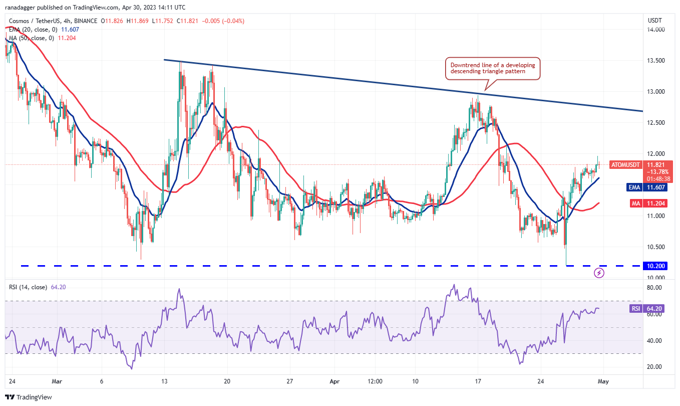 Mặt khác, nếu cặp ATOM/USDT đảo ngược hướng từ đường xu hướng giảm, thì điều đó cho thấy rằng phe gấu đang cố gắng hình thành mô hình tam giác giảm dần. Việc giảm xuống dưới các đường trung bình động sẽ mở ra khả năng kiểm tra lại mức 10,20 USD.