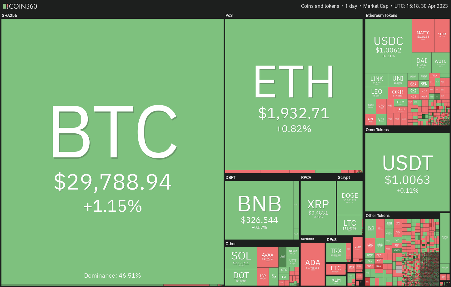 Đường trung bình động hàm mũ 20 ngày (28,783 USD) đã bắt đầu tăng dần và chỉ số sức mạnh tương đối (RSI) nằm trong vùng tích cực, cho thấy rằng con đường ít kháng cự nhất là đi lên.