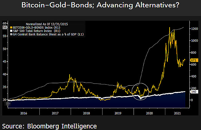 Bảo vệ danh mục đầu tư khỏi sự biến động tiềm ẩn của thị trường chứng khoán là gì? Theo Mike McGlone của Bloomberg Intelligence, sự hợp nhất của Bitcoin (BTC), vàng và trái phiếu chính phủ.