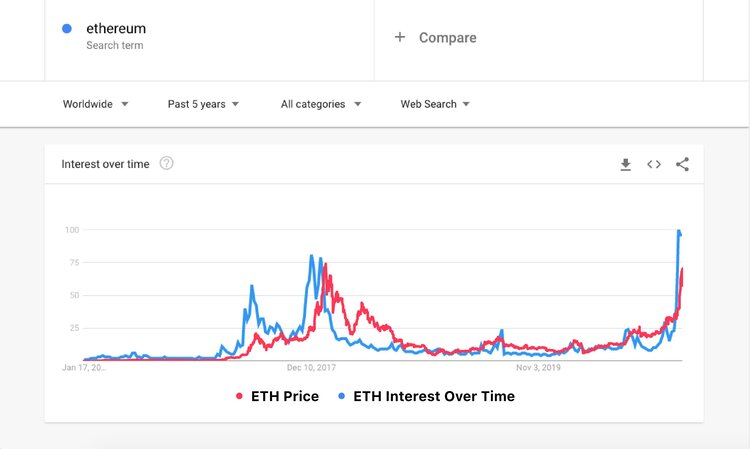 Theo Bloqport, các tìm kiếm Ethereum đã đạt đến mức cao mới mọi thời đại. Trong lịch sử, giá và vốn hóa thị trường của ETH đã tụt hậu so với các tìm kiếm trên Google 1 tuần. Nếu xu hướng này tiếp tục, chúng ta có thể thấy giá ATH mới vào ngày 21 tháng 1.