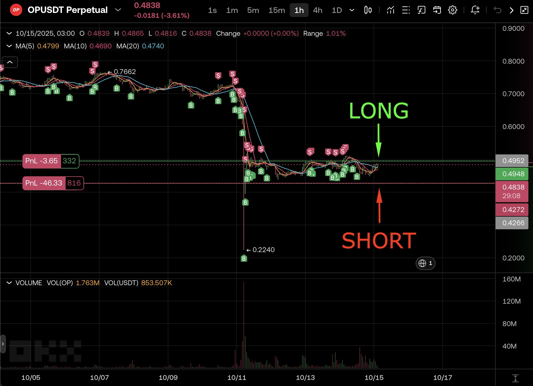 Khi thị trường bắt đầu sụp đổ, các vị thế Long tạm thời ghi nhận lỗ nhỏ, nhưng các vị thế Short đã kích hoạt và thu lợi nhuận, giúp cân bằng các khoản lỗ và giữ cho danh mục đầu tư ổn định.