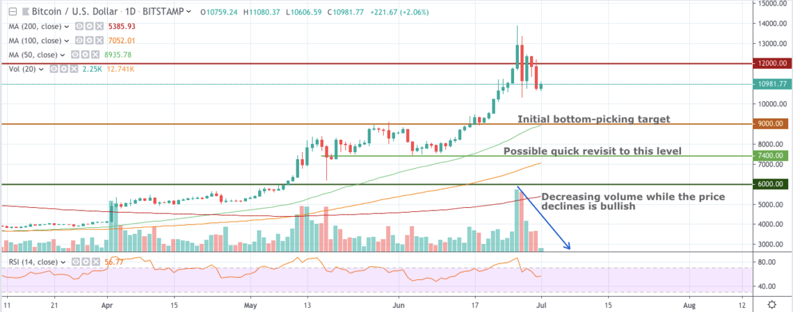 Bitcoin đang ở giữa một sự điều chỉnh đáng kể và các mục tiêu chọn đáy của chúng tôi là 9.000 đô la và 7.400 đô la.