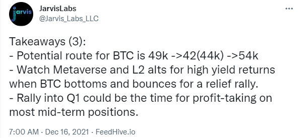 Tóm lại, Jarvis Labs tuyên bố rằng 42.000 USD hiện là mức đáy cục bộ của BTC, nhưng cảnh báo rằng nó cần sớm phục hồi lên 53.000 USD.