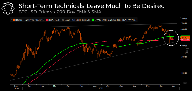 Delphi Digital tiếp tục nói rằng thiết lập kỹ thuật hiện tại cho BTC “để lại nhiều điều mong muốn”, đặc biệt là sau khi giá giảm trở lại dưới đường trung bình động hàm mũ 200 ngày và đang trong quá trình kiểm tra đường trung bình động đơn giản 200 ngày của nó.