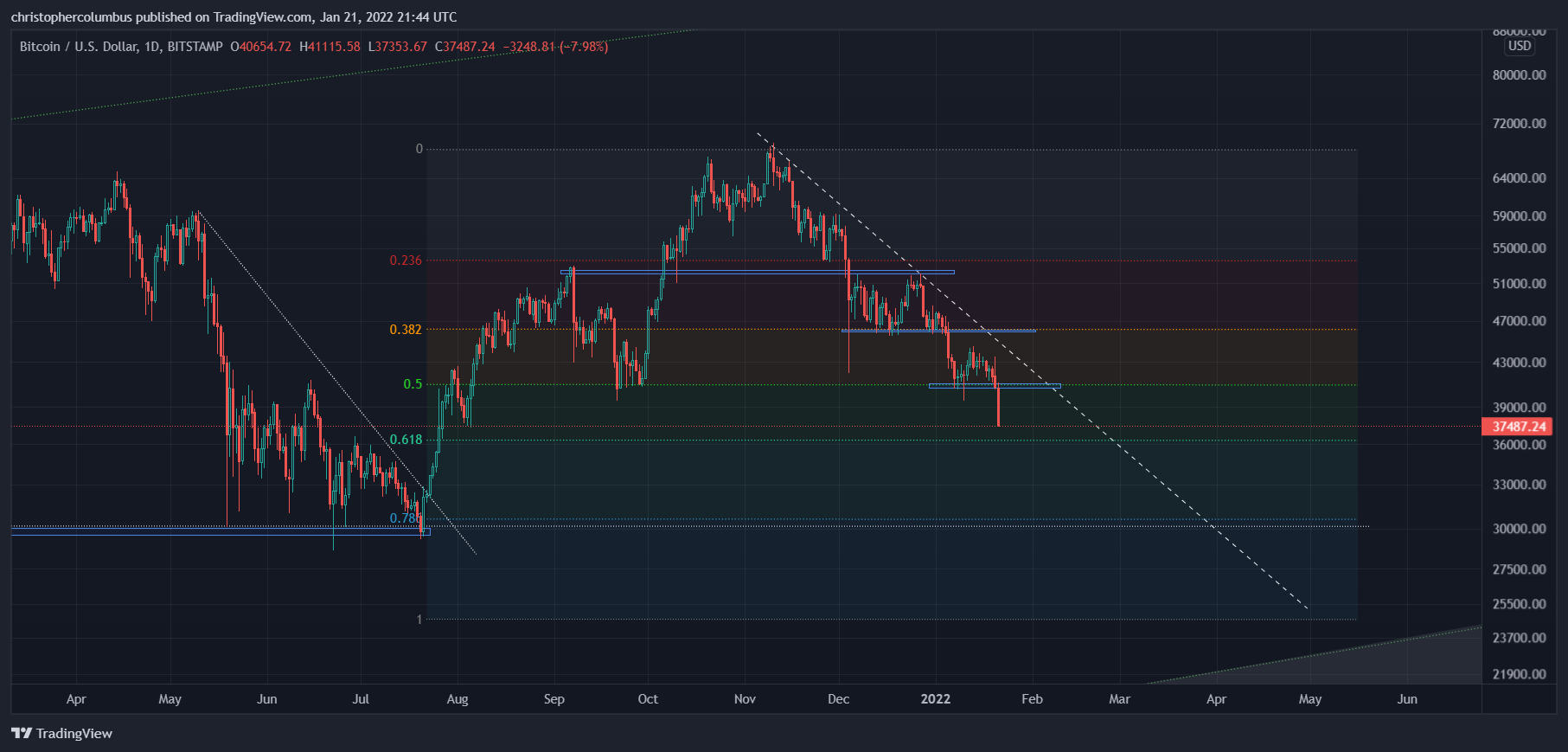 Nhà phân tích có biệt danh Dave the Wave nói với 90.000 người theo dõi Twitter của mình rằng Bitcoin đã mất mức hỗ trợ quan trọng ở mức 40.000 USD và phải đối mặt với nhiều rủi ro giảm giá hơn.