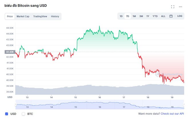 Theo dữ liệu của CoinMarketCap, sau 2 tuần, giá Bitcoin một lần nữa quay trở về vùng giá dưới 40.000 USD. Kể từ đợt lao dốc vào tối ngày 17/2, đồng tiền số lớn nhất thế giới vẫn duy trì xu hướng sụt giảm và chưa xuất hiện tín hiệu hồi phục.