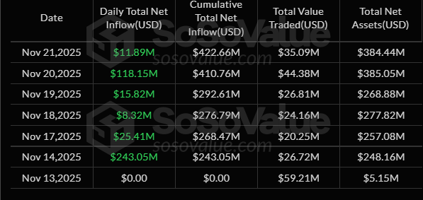 Các quỹ đó đã thu hút khoảng 422 triệu USD tổng dòng vốn trong hai tuần giao dịch đầu tiên, cho thấy sự quan tâm sớm từ các tổ chức đối với sản phẩm liên kết với XRP.