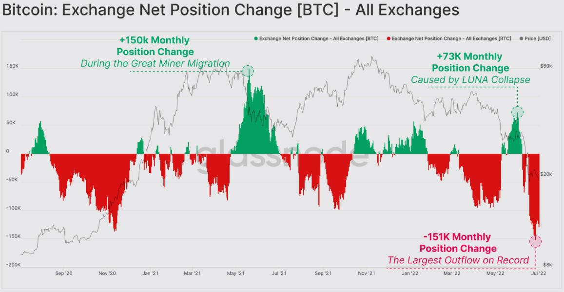 Kể từ tháng 3 năm 2020, số lượng Bitcoin được nắm giữ trên các sàn giao dịch đã giảm từ 3,15 triệu xuống còn 2,4 triệu. Đó là tổng dòng chảy ra của 750,00 BTC với 142.500 BTC trong tổng số đó xảy ra trong ba tháng qua.