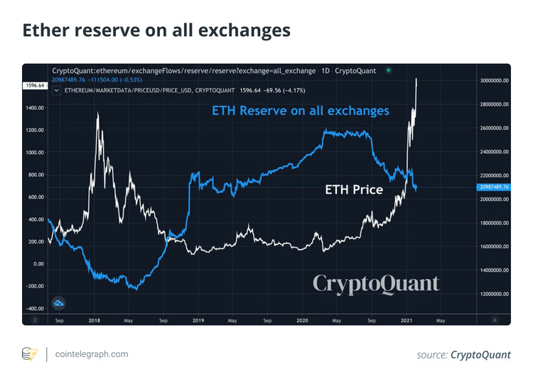 Dòng tiền trên sàn giao dịch cũng đang tăng lên, điều này cho thấy người mua quan tâm đến việc nắm giữ tài sản hơn là bán. Ki Young Ju, Giám đốc điều hành của công ty phân tích dữ liệu tiền điện tử CryptoQuant, nói: “Vì dự trữ ETH trên tất cả các sàn giao dịch tiếp tục giảm, tôi nghĩ rằng đợt tăng giá sẽ tiếp tục cho đến khi nó ngừng giảm”.