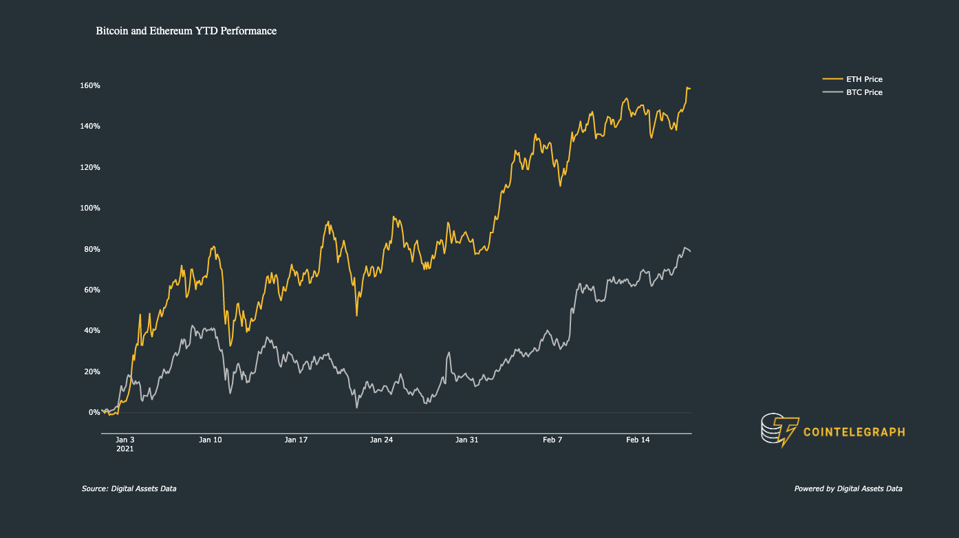 Sau khi trải qua phần lớn tháng 2 giao dịch đi ngang với đà tăng khiêm tốn, đồng altcoin lớn nhất đã thức tỉnh trong tuần này. Tại thời điểm viết bài, tổng lợi nhuận hàng ngày đạt hơn 4%, với Ether đạt mức cao nhất mọi thời đại mới là $1,930.