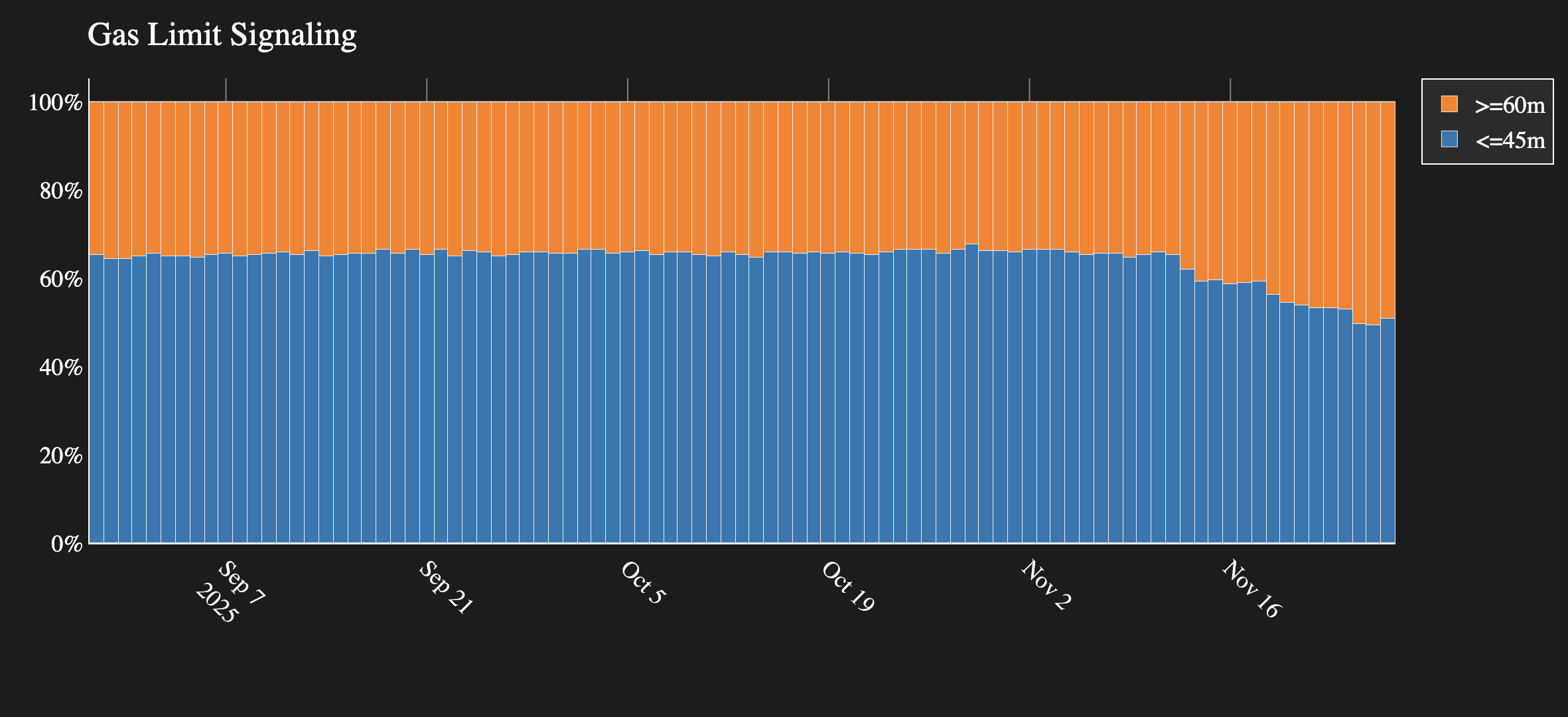 Việc điều chỉnh được tự động áp dụng vào ngày 25 tháng 11 sau khi hơn một nửa số người xác thực báo hiệu chấp thuận — ngưỡng yêu cầu theo các quy tắc đồng thuận hiện tại của Ethereum.