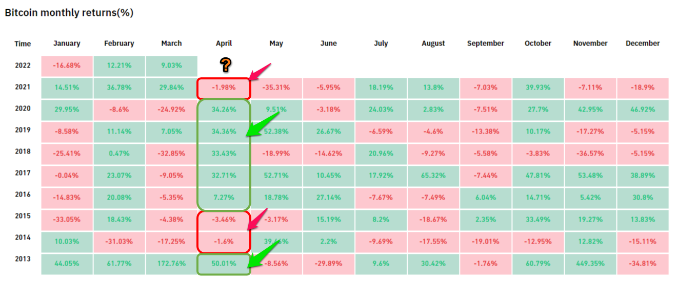 Đây là biến động của giá Bitcoin thường thấy vào tháng 4 trong gần 10 năm qua.
