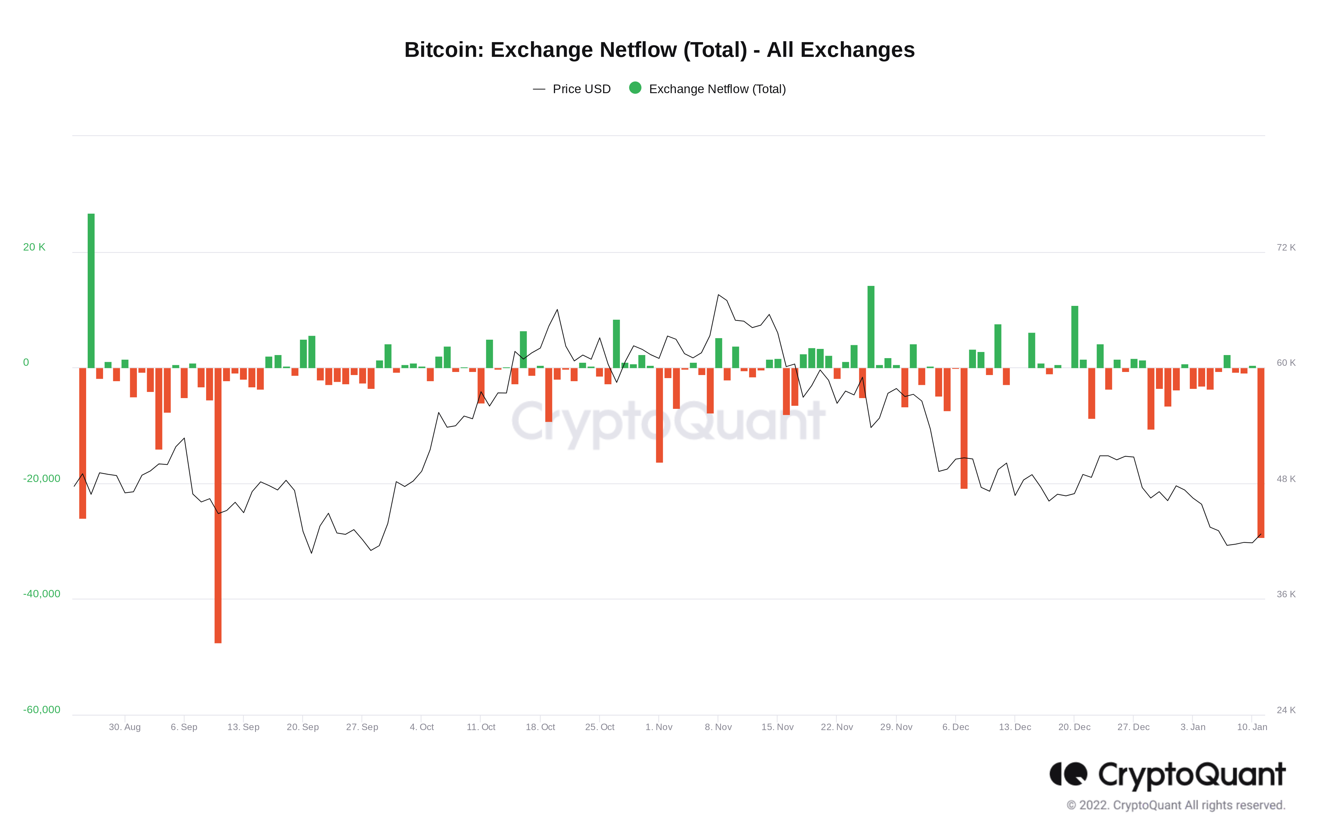 Dữ liệu từ công ty phân tích chuỗi trực tuyến CryptoQuant cho thấy vào ngày 11 tháng 1, 29.371 BTC đã được rút khỏi sàn giao dịch – nhiều nhất kể từ ngày 10 tháng 9.