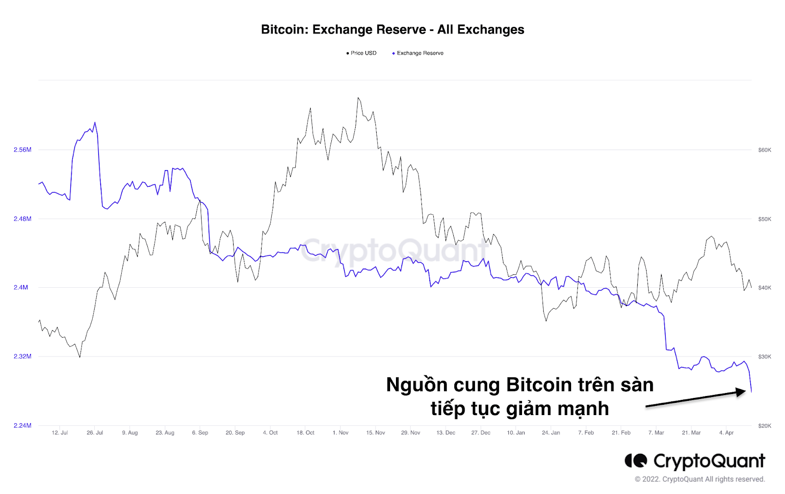 Nguồn cung Bitcoin trên sàn. Nguồn: CryptoQuant.