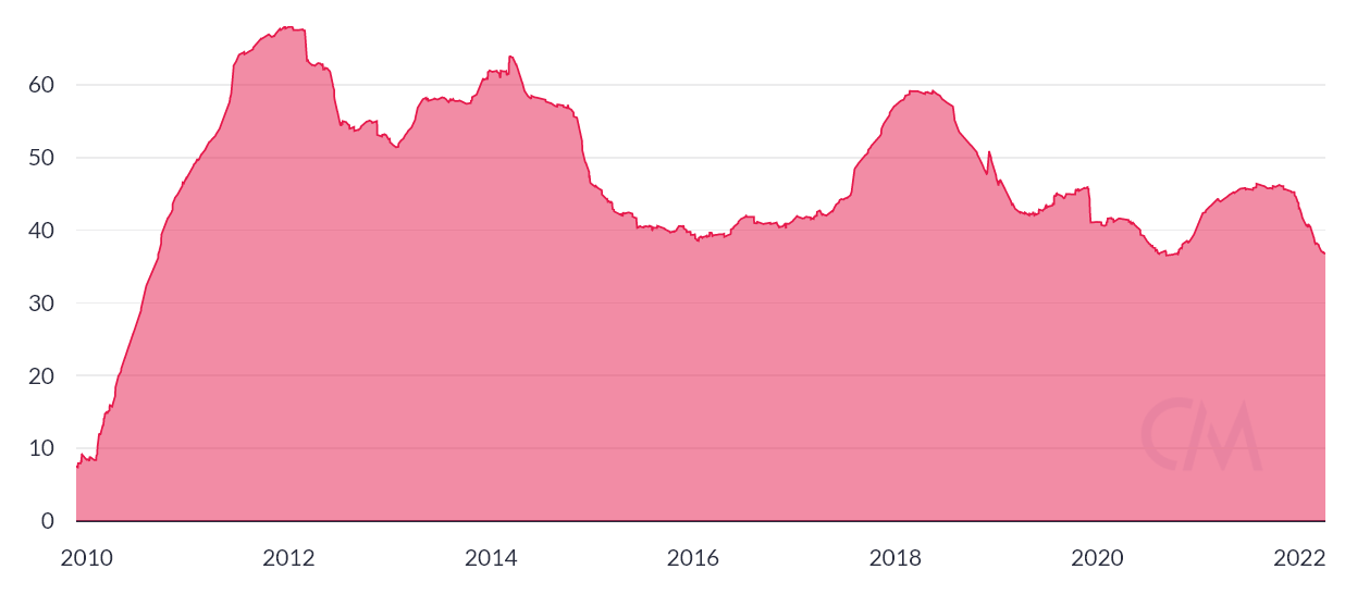 Phí bảo hiểm hàng năm của hợp đồng tương lai Bitcoin sẽ dao động từ 5% đến 12% để bù đắp cho các nhà giao dịch vì đã “khóa” tiền trong hai đến ba tháng cho đến khi hợp đồng hết hạn. Các mức dưới 5% là cực kỳ giảm giá, trong khi các con số trên 12% cho thấy xu hướng tăng.